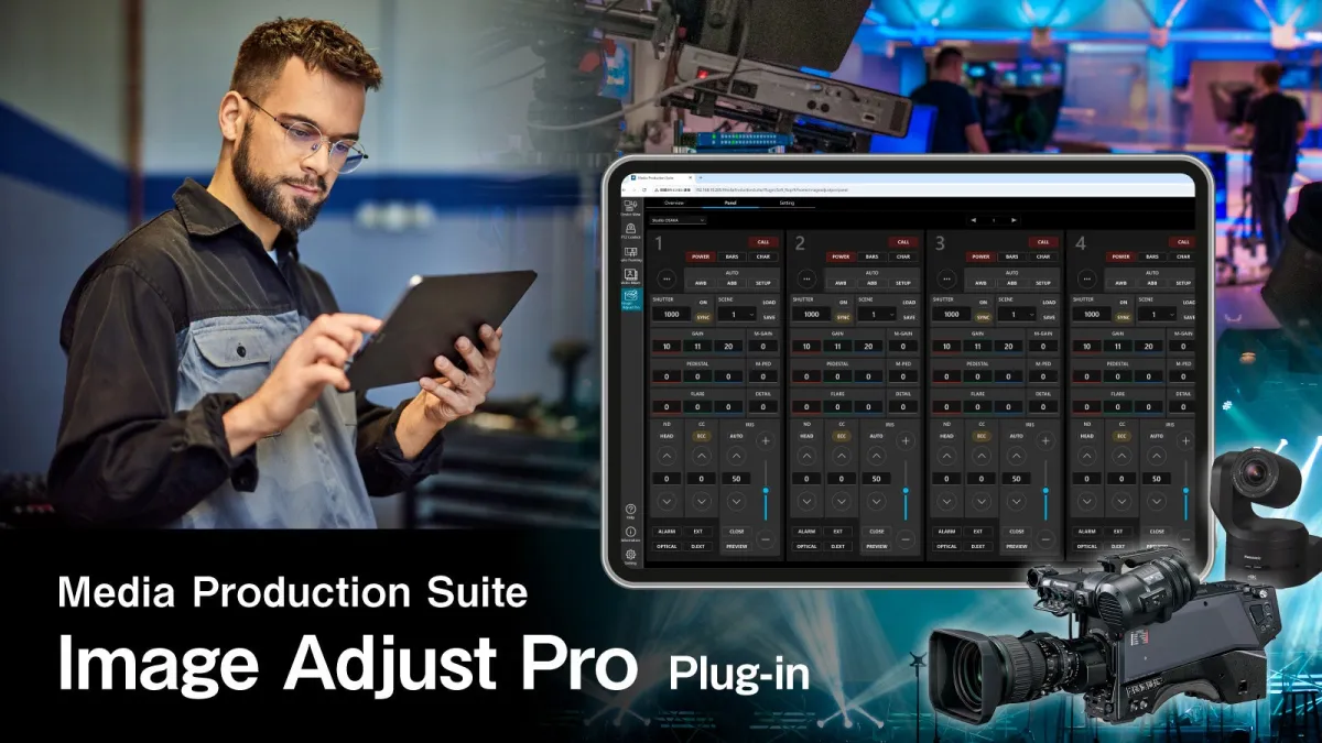 Image Adjust Proは、パナソニック製のスタジオカメラやリモートカメラに対応しています。このプラグインを使用することで、PCやタブレット端末から最大で20台のカメラを一度に確認し、遠隔で設定を調整することが可能になります。これにより、現場での設置スペースを有効活用しつつ、操作の効率化が実現されます。