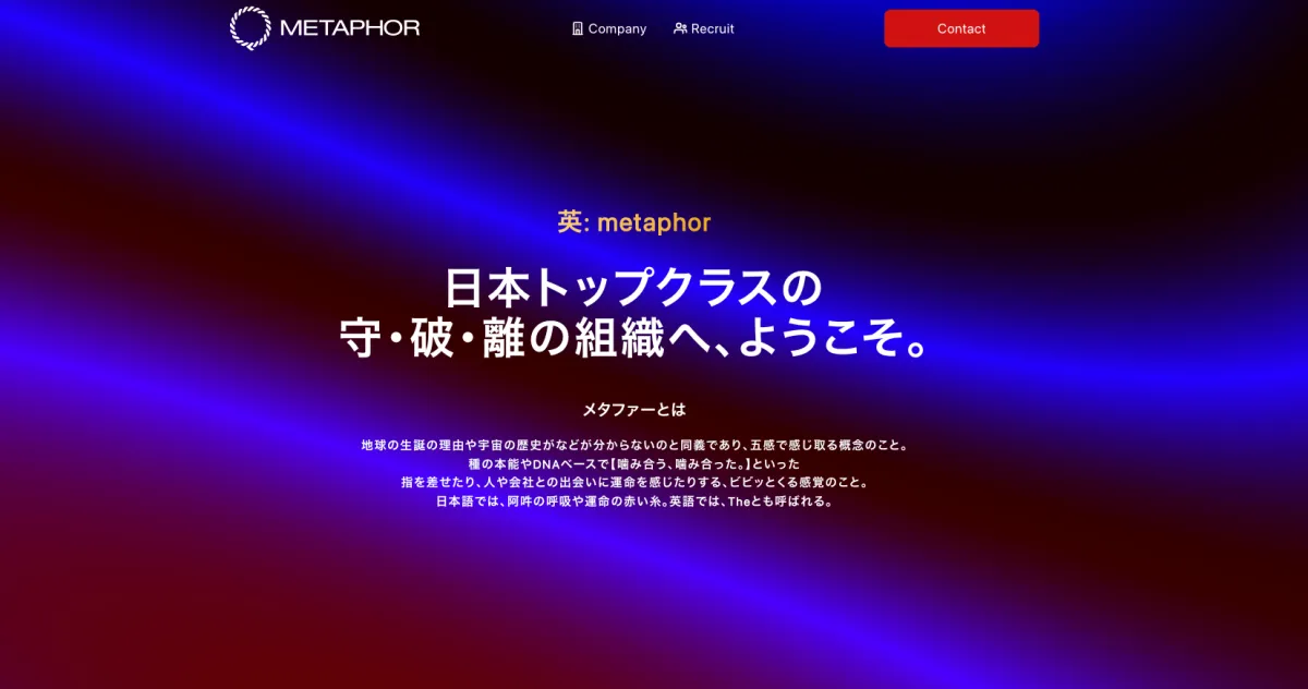メタファーのコアには、独自の成り立ちがあります。創業メンバーの2人は、学生時代に起業し、それぞれ異なる会社を10年間運営してきました。その間、多くの挑戦と失敗を重ねながら、真に信頼できるパートナーシップを築くことの重要性を理解するようになったと言います。彼らの願いは、信頼を基にしたビジネスを通じて、顧客と共に成長すること。そして、時が経っても一緒に楽しむ場を持ちたいという思いから、株式会社メタファーが誕生しました。