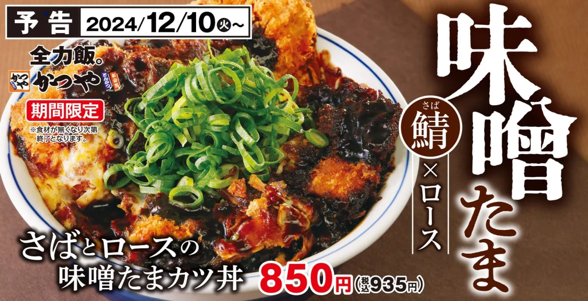 とんかつ専門店「かつや」が、2024年12月10日(火)より新たな魅力を放つ商品の販売を開始します。それが「さばとロースの味噌たまカツ丼」。このユニークなメニューは、昼食や夕食だけでなく、ちょっとしたおやつとしても最適です。