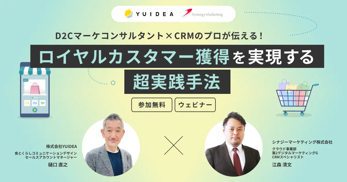 そんな企業に向けて、株式会社YUIDEAとシナジーマーケティング株式会社が共催するオンラインセミナーが2025年4月22日(火)に開催されます。このセミナーでは、「ロイヤルカスタマーを増やすために今すぐ実践できる施策」がテーマで、実践的な内容が提供されます。講師には、YUIDEAの樋口直之氏とシナジーマーケティングの江森清文氏を迎え、実際の事例を交えて具体的なアプローチを紹介します。