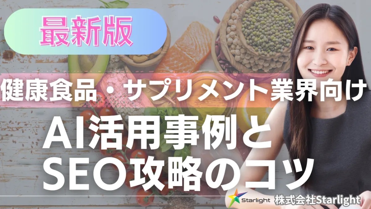 株式会社Starlightは、健康食品とサプリメント業界向けに特化した「2025年版 健康食品・サプリメント業界向けAI×SEOトレンドレポート」を発表しました。このレポートは、最新のSEO戦略やAIの活用テクニックを集約し、ビジネスでの集客力向上に貢献することを目的としています。