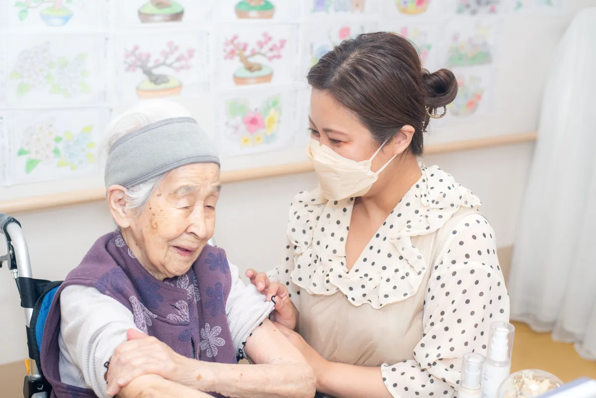 介護美容の効果は、美容だけに留まりません。あるグループホームのケアビューティストが定期的に訪問し、ネイルケアを行ったところ、元々消極的だった入居者が、ネイルを好きな色に彩ることを通じて、自分の好みを表現できるようになりました。これがきっかけとなり、他の利用者間でのコミュニケーションも活発化し、施設全体の雰囲気が明るくなったといいます。