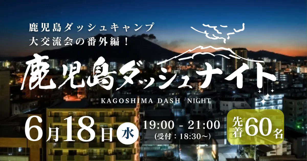 南国の地、鹿児島で、ビジネスの新たな潮流を生み出す特別な一夜が幕を開けます。2025年6月18日(水)、株式会社Wizが主催する交流イベント「鹿児島ダッシュナイト」が、鹿児島のビジネスシーンに熱い風を吹き込みます。これまで成功を収めてきたビジネスカンファレンス「鹿児島ダッシュキャンプ」から派生したこのカジュアルな交流会は、「鹿児島の黄金時代をいま」をスローガンに掲げ、地域経済の活性化と新たな協業の創出を目指します。