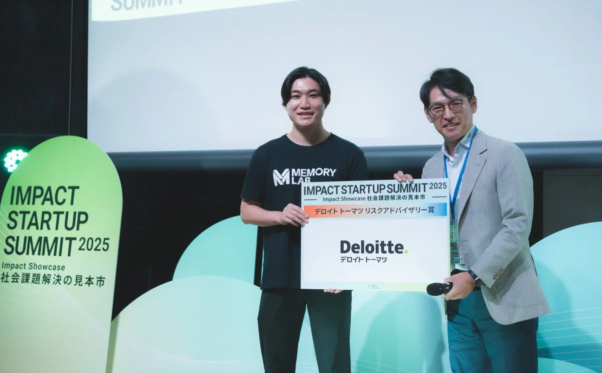 2025年10月14日、株式会社MEMORY LABが東京都中央区の東京コンベンションホールで開催された「IMPACT STARTUP SUMMIT 2025」にて、「デロイト トーマツ リスクアドバイザリー賞」を受賞しました。この賞は社会課題の解決と持続的成長を両立させるスタートアップを表彰するものであり、MEMORY LABのAIプラットフォーム『Memory AI』が高く評価されたことを示しています。