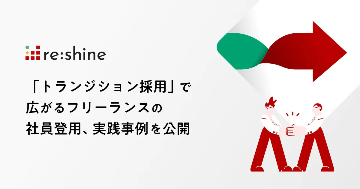 特許検索サービスを手がけるPatentfield株式会社は、トランジション採用の先駆けとしてこのメソッドを活用しています。従来、業務委託のフリーランスを選ぶ際には、仲介業者の高い手数料が障壁となり、またスキルの実態を見極めるのが難しいという問題がありました。しかし、「re:shine」を利用することで、フリーランスエンジニアを低コストで採用できるだけでなく、実務を通じて候補者の能力を評価し、最終的にトランジション採用を行うことが出来るのです。