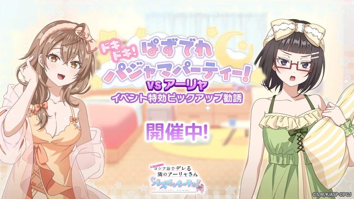 2026年4月17日(金)より、ポッピンゲームズジャパンが手がけるスマートフォン向けゲーム『時々ボソッとロシア語でデレる隣のアーリャさん パズルパーティ!』(通称:ぱずでれ)が、新たなイベントとキャラクターをお披露目します。今回は可愛らしいネグリジェ姿の沙也加とマーシャがプレイヤーを迎える特別なピックアップ勧誘が実施される予定です。