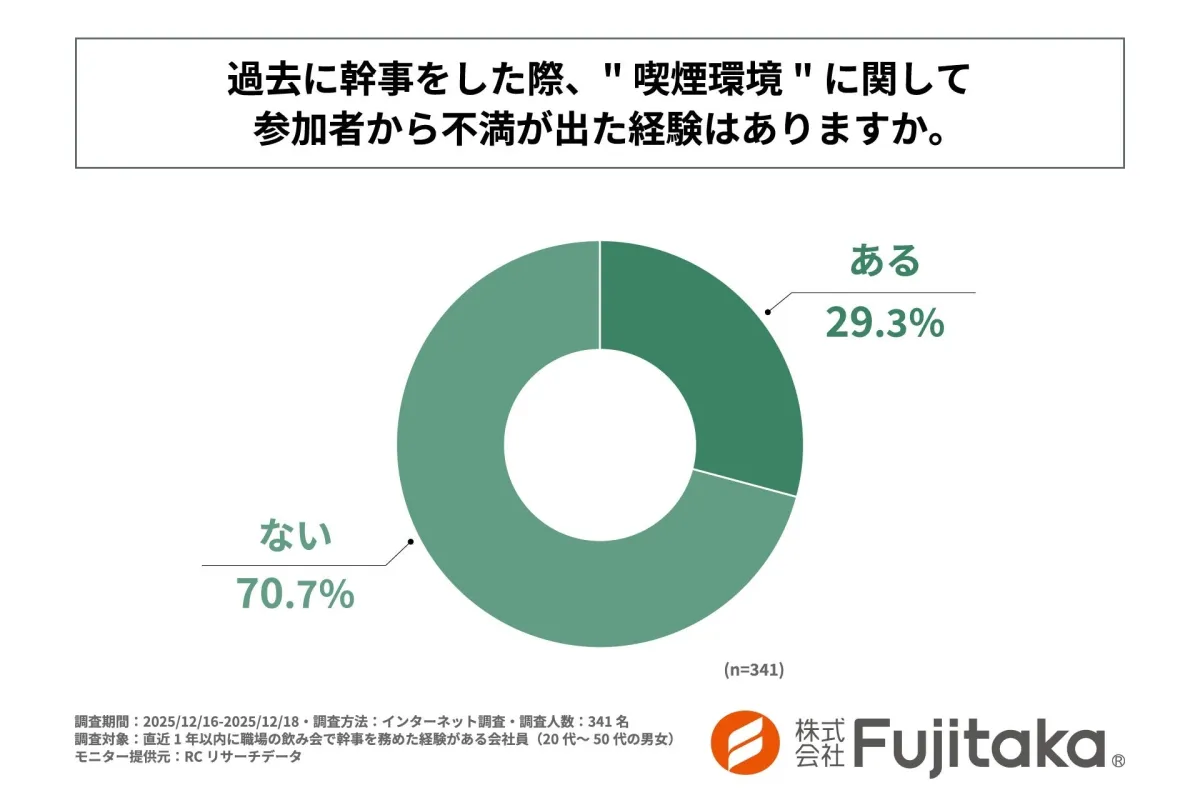本調査では、直近1年内に職場の飲み会で幹事を経験した会社員341名に対し、喫煙環境に関する選択を調査しました。その結果から、現在の飲み会環境における幹事の選択やその理由が浮き彫りになりました。