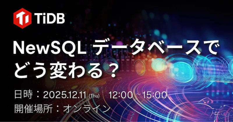 PingCAPが主催するこのオンラインイベントは、データベース技術の最前線を知る貴重な機会です。NewSQLの理解を深め、実際の業務にどう活かすかを考える場として、是非ご参加ください。興味がある方は、公式サイトでの事前登録をお忘れなく!