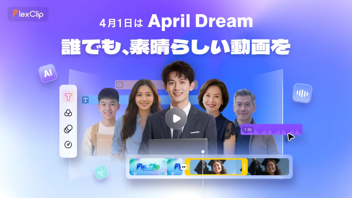 4月1日、FlexClip(PearlMountain Limited)は、特別な日に自身の夢を発表しました。この日はPR TIMESの「April Dream」プロジェクトに賛同し、同社が主張する未来のビデオ編集のビジョンを共有する場となりました。これまでの動画制作は技術や知識が不可欠でしたが、FlexClipはその概念を覆そうとしています。