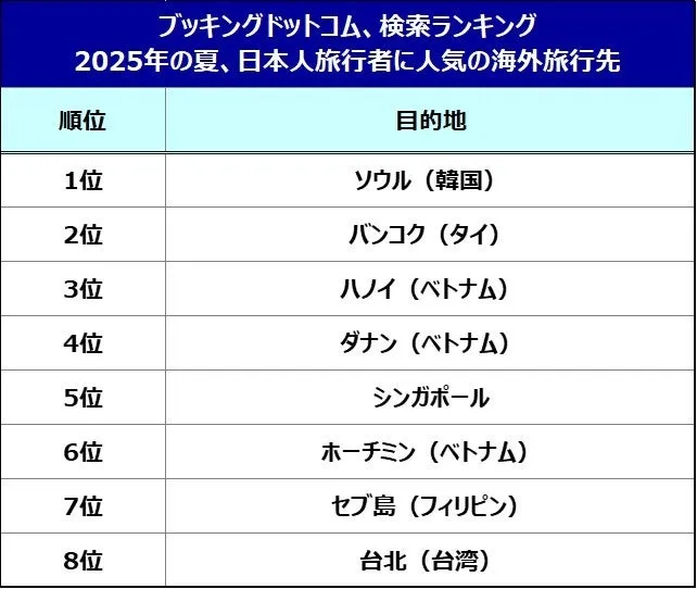 ブッキング・ドットコムが発表した、2025年夏に人気の海外旅行先のランキングが話題を呼んでいます。日本の夏休みであるお盆期間中に多くの人々が訪れることが予想されるこの時期、特に目を引くのは韓国・ソウルの人気です。アクセスの良さ、そしてK-POPや韓国ドラマなどの影響で、韓国への旅行はますます注目を集めています。家族づれにオススメの観光スポットも数多く存在します。