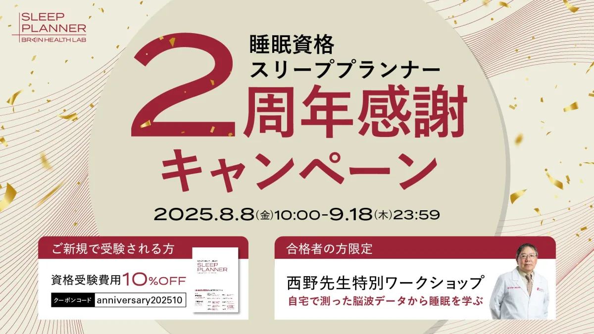 この特別な節目を祝うため、ブレインヘルスラボでは「2周年感謝キャンペーン」を実施します。このキャンペーンでは、スリーププランナーとしてのこれまでの難しい道のりを共に歩んでくださった皆様への感謝の気持ちを込め、さらに新たな学びを提供します。