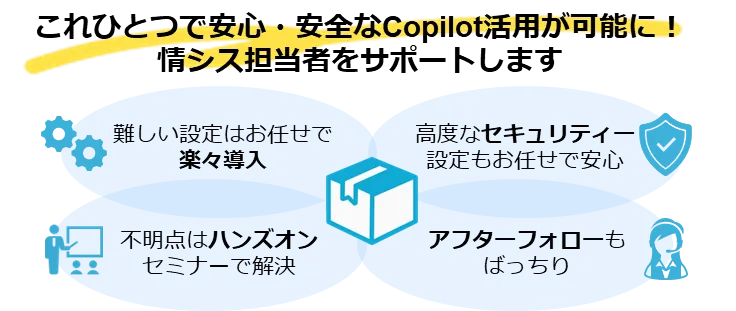 このように、Microsoft 365 Copilotコンプリートパックは、全体的なサポートを通じて企業が抱える潜在的な不安を解消し、スムーズな導入を実現します。