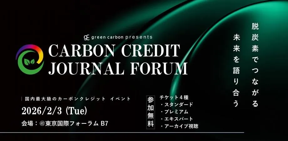 2026年2月3日、国内最大級のカーボンクレジット特化フォーラム「Carbon Credits Journal Forum」が東京国際フォーラムB7で開催されます。このイベントでは、国内外の脱炭素活動の主要プレイヤー500名以上が一堂に会し、カーボンクレジットの未来について熱く語り合う場となります。