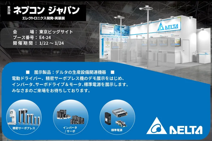 2025年1月22日(水)から1月24日(金)にかけて、東京ビッグサイトにて開催されるアジア最大級のエレクトロニクス開発・実装展「ネプコンジャパン2025」に、デルタ電子株式会社が出展することが決まりました。この展示会では、エレクトロテストジャパンとして紹介される構成展示会が行われ、デルタの先進的な電子部品製造工場向けの製品が披露されます。