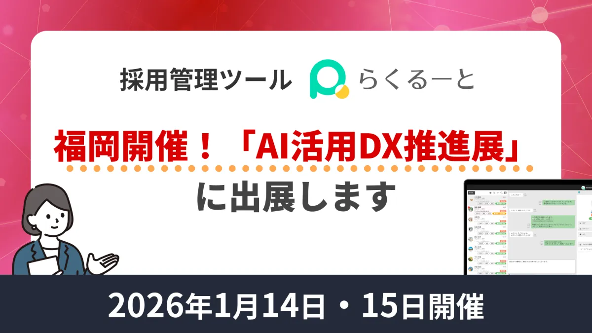 株式会社アイシスが提供する採用管理ツール「らくるーと」が、2026年1月14日(水)と15日(木)に福岡市で開催される第12回「解決市場 AI活用DX推進展」に出展します。この展示会では、具体的に採用業務におけるAI活用の取り組みを提案し、参加者に向けてその実力を実際に体験してもらいます。