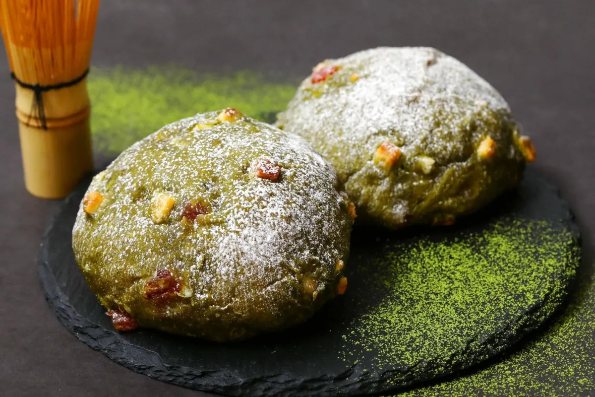 - - 特徴:抹茶を練り込んだ生地にドライストロベリーとホワイトチョコを加え、焼き上げた一品。噛むたびにもっちりとした食感とともに抹茶の香ばしい香りが広がり、ドライストロベリーの甘酸っぱさとホワイトチョコのまろやかな甘みが絶妙に融合しています。視覚的にも鮮やかな緑が初夏を思わせる仕上がりです。