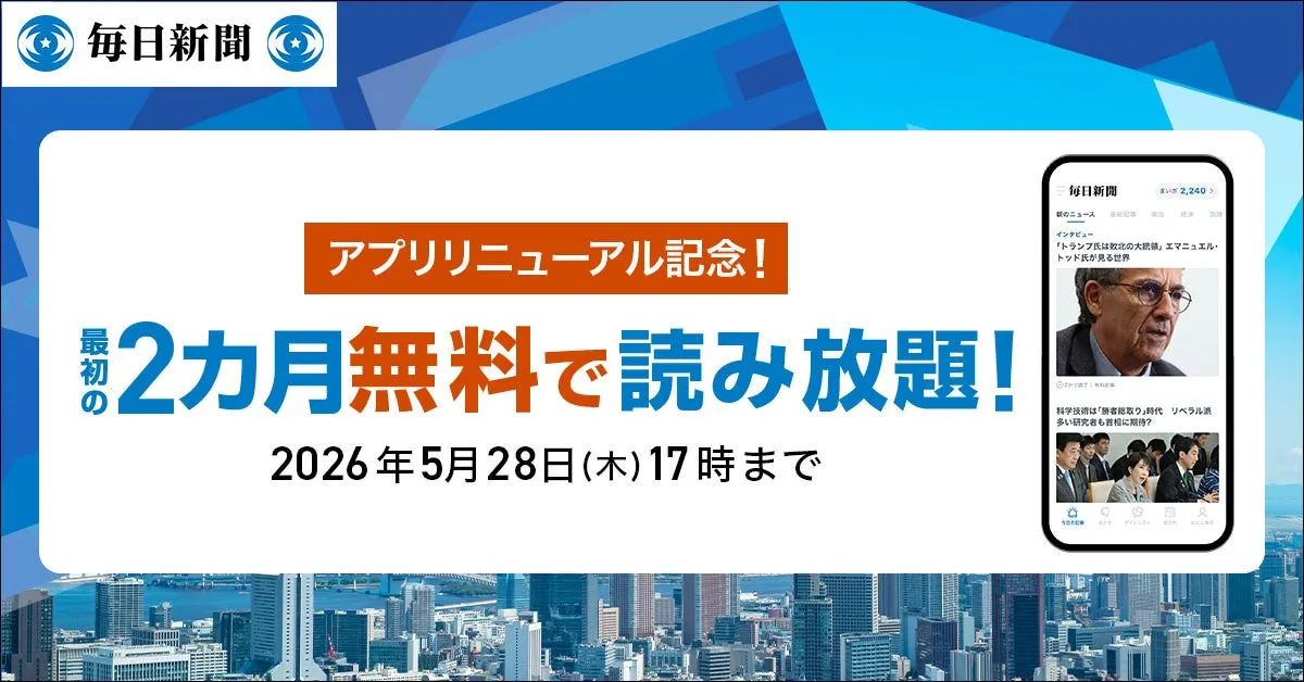 毎日新聞社が提供するニュースサービス『毎日新聞デジタル』は、2026年4月7日から5月28日までの期間中に「アプリリニューアル」キャンペーンを開始します。このキャンペーンでは、新たにリニューアルされたスタンダードプランを利用することで、初めての方には最初の2カ月が無料になるという魅力的な特典が用意されています。3カ月目以降は通常料金の1,078円(税込)で自動更新されますが、このチャンスを逃さずに日々のニュースにアクセスしてみてはいかがでしょうか。
