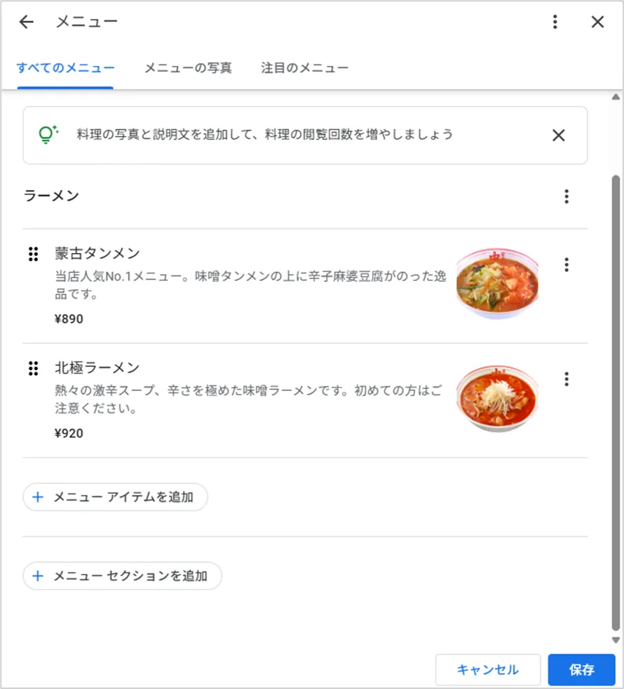 ラーメン店のビジネスプロフィールでは、以下の項目を設定しておくことが大切です: