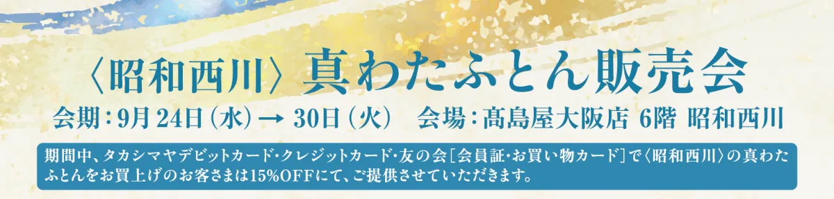 9月24日(水)から30日(火)までの間、髙島屋大阪店6階寝具売場で「昭和西川」の「真わたふとん販売会」が開催されます。この期間中、最も注目されるのは、9月27日(土)と28日(日)に行われる熟練職人による「真わた手引き実演会」です。天然素材として知られる真わたが、蚕の繭からどのように作られるのか、そのプロセスを近くで見ることができる貴重な機会です。