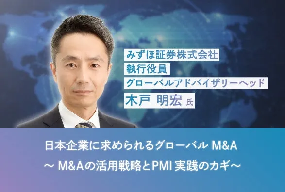 このような背景を踏まえ、株式会社レイヤーズ・コンサルティングは、2025年7月24日(木)に「日本企業に求められるグローバルM&A ~M&Aの活用戦略とPMI実践のカギ~」というオンラインセミナーを開催します。このセミナーには、みずほ証券株式会社の執行役員である木戸明宏氏を基調講演者として迎え、海外投資家が求めるM&Aの規律やプロセスについて語っていただきます。