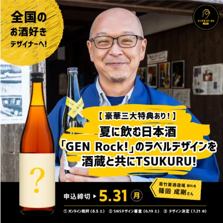 「GEN Rock!」は“夏に飲む日本酒”をテーマにした新商品で、若竹屋酒造場の伝統的な「元禄酒」をもとにしています。この新しいお酒をより魅力的にするため、参加するデザイナーたちには独自の視点や感性を生かしてもらい、ラベルデザインを通じてその魅力を表現してもらいます。