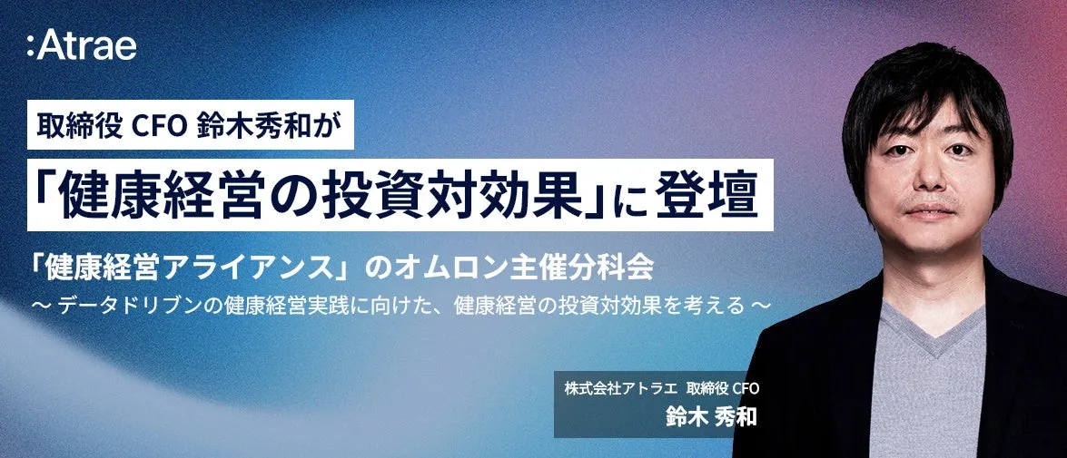 CFO鈴木が登壇することで、アトラエの視点がどのように組織内の健康経営に寄与するのか、参加者にとって貴重な知見が得られることでしょう。さらに、専門家や有識者とのディスカッションにより、他社の取り組みと比較しながら自社の健康経営を見直す良い機会となります。