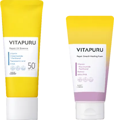 2026年3月19日から、ビタプルは新しい製品、リペアUV乳液とリペアスムースウォッシングフォームを発売します。この2つの製品はそれぞれ、特許成分を使用し、肌を健やかに保つための成分を贅沢に配合しています。