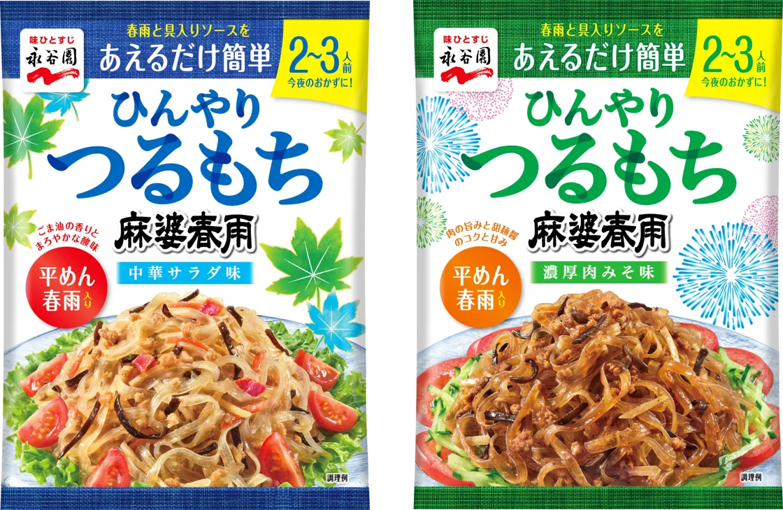 2026年5月25日、株式会社永谷園が新発売するのは、冷やして食べることができる「ひんやりつるもち麻婆春雨」です。この新商品には、中華サラダ味と濃厚肉みそ味の2種類があり、どちらも希望小売価格は税抜き380円となっています。従来の温かい麻婆春雨とは異なり、さっぱりとした副菜として開発されました。