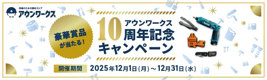 建材通販サイト「アウンワークス」が、2025年12月1日にサービスをスタートしてから10周年を迎えることを記念し、感謝の気持ちを込めたプレゼントキャンペーンを開催します。キャンペーンは2025年12月31日まで実施され、合計5,000円以上(税込)のご注文をした方を対象に抽選で豪華な賞品が当たります。