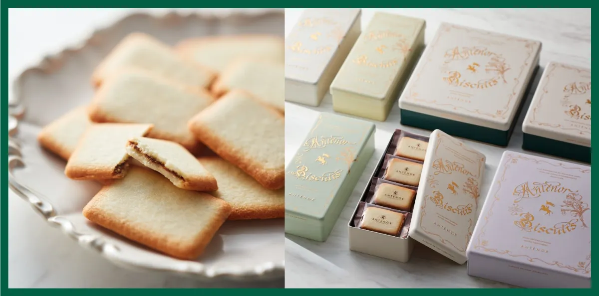新しくデザインされた缶には、一つ一つ丁寧に描かれた美しいカリグラフィーが施されています。『Antenor Biscuit』というタイトルには、「常においしさを追求し、お客様に愛されるクッキーであり続けたい」という想いが込められています。新たな美しい缶は、見た目にも楽しませてくれそうです。