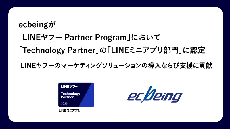 株式会社ecbeing(イーシービーイング)は、16年連続でEC構築プラットフォームにおいてトップのシェアを持つ企業です。最近、LINEヤフー株式会社の「LINEヤフー Partner Program」において、2025年度の「Technology Partner」の「LINEミニアプリ部門」に認定されました。このプログラムは、LINEとYahoo! JAPANを活用したマーケティングや顧客体験(CX)の向上を目指して設立されたもので、広告代理店やサービスデベロッパーを資格別に認定します。