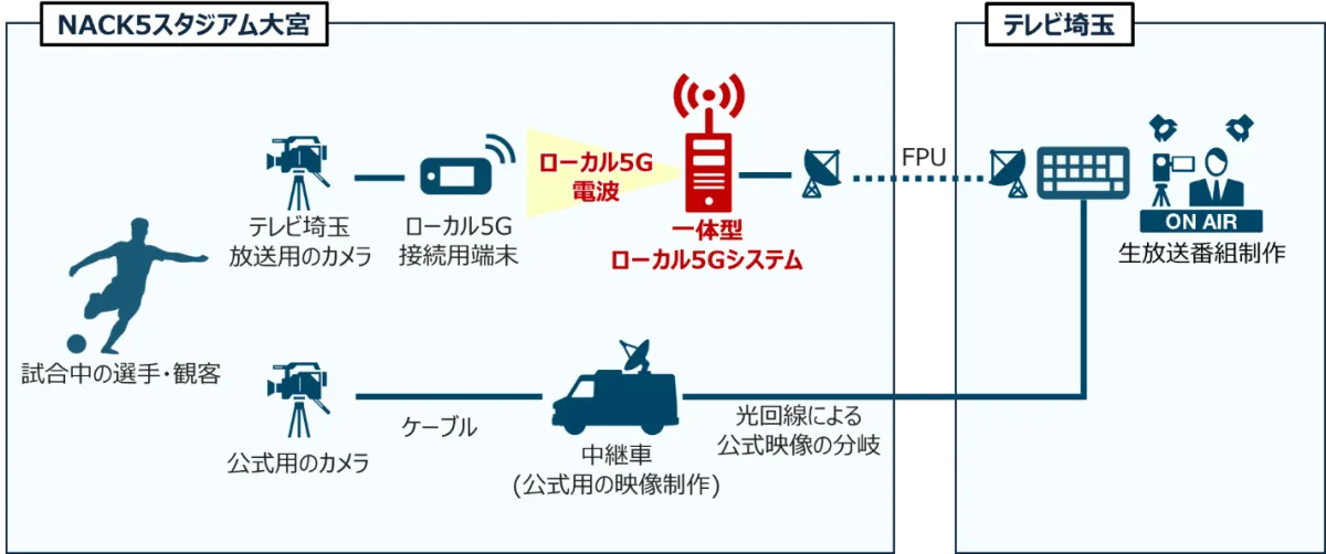 2025年11月23日、NTT株式会社とNTT東日本、テレビ埼玉が共同で、埼玉県のNACK5スタジアム大宮において、ローカル5Gを活用した高画質・低遅延のスポーツ中継の実証実験を実施しました。これは、明治安田J2リーグ第37節、RB大宮アルディージャ対徳島ヴォルティスの試合を対象に行われたものです。この試みは、スタジアム内でローカル5Gの実用性を確認し、映像制作における新たな可能性を広げるものとなりました。