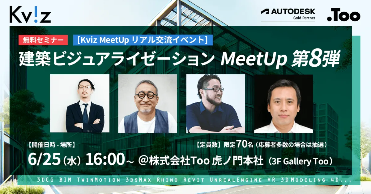 2025年6月25日(水)、東京・虎ノ門にて、クリエイティブ市場の総合商社である株式会社Tooが主催する「建築ビジュアライゼーションMeetUp第8弾」が開催されます。このイベントは、建築界における最新技術やトレンドについての意見交換やネットワーキングを促進する貴重な機会です。