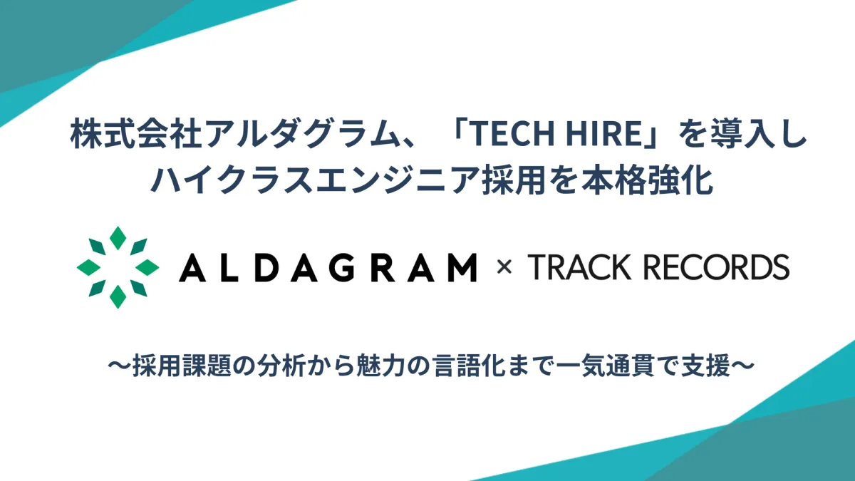 株式会社トラックレコードが提供するエンジニア中心のデジタル人材採用支援サービス「TECH HIRE」が、株式会社アルダグラムに導入されました。アルダグラムはこの取り組みにより、ハイクラスエンジニアの採用を強化し、プロダクト開発の充実を図ります。