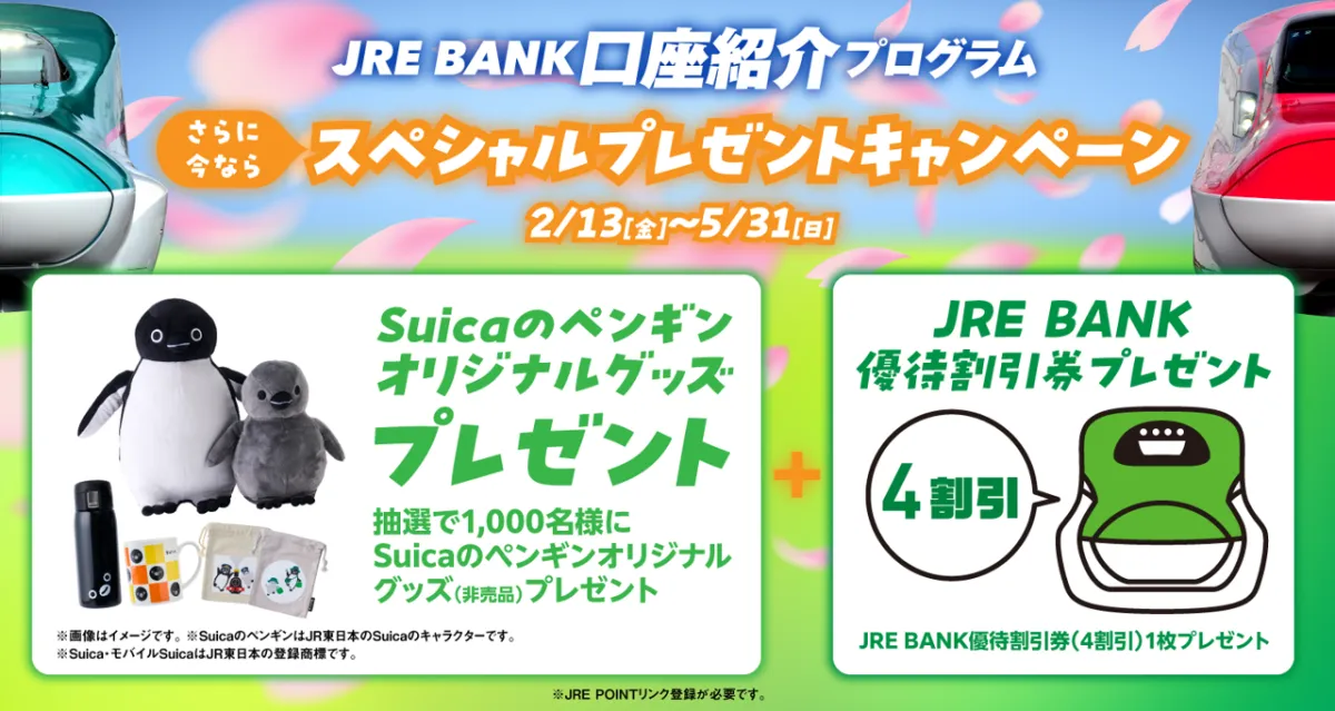 - JRE BANK優待割引券(4割引)のプレゼント(条件達成者全員)