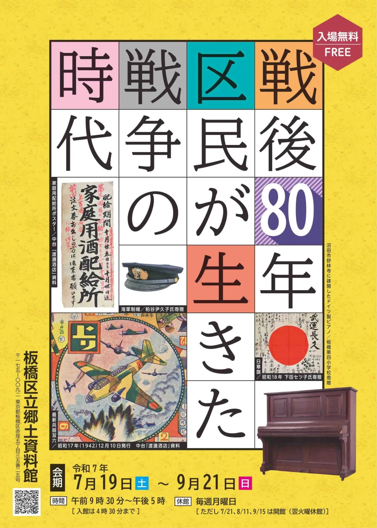 地域の歴史や戦争に関する多くの資料が集まるこの展示は、戦後80年という大切な時期に、私たちが歴史を学び直し、未来に生かすための貴重な機会です。ぜひ、板橋区の郷土資料館に足を運んで、戦争の時代について考えてみてはいかがでしょうか。