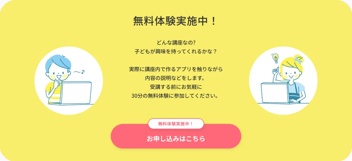 7月中に申し込むと、初回2時間の受講が無料になります。このチャンスを活かして、親子で一緒にプログラミングを楽しんでみませんか?