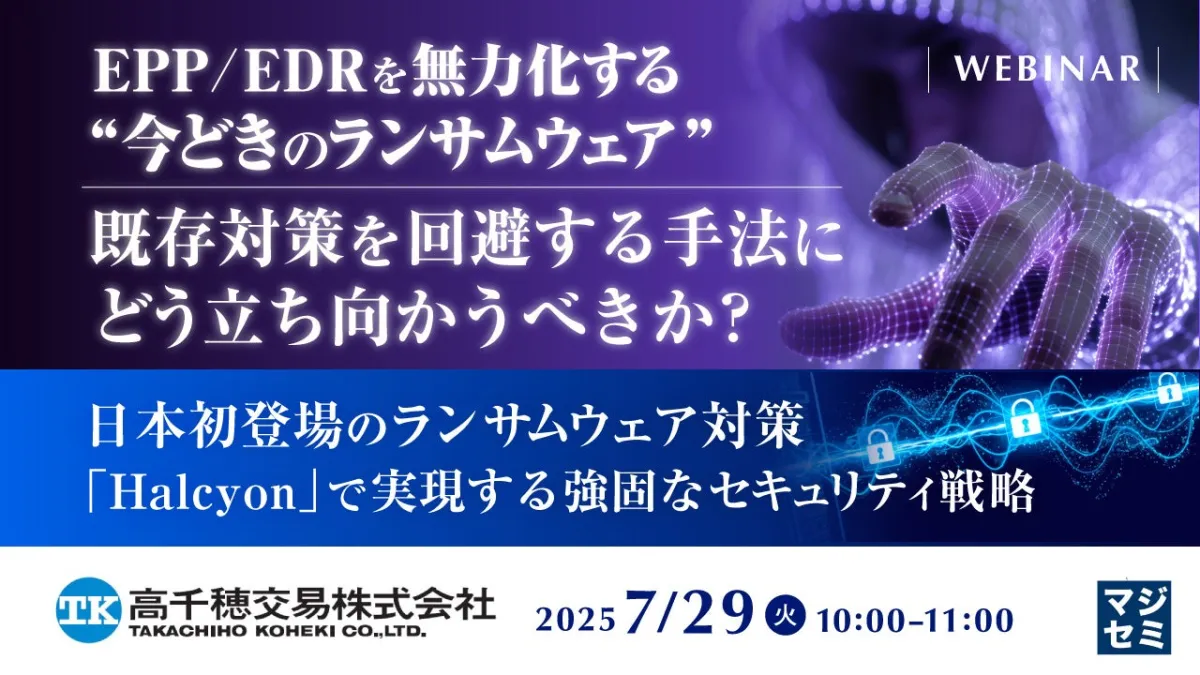現在の状況を打破すべく、マジセミが主催するウェビナーでは「Halcyon」を紹介します。このプラットフォームは、他の対策で防げない領域をカバーし、新たな防御モデルを提供します。具体的には、ランサムウェア感染の最適解として機能し、万が一の際にも迅速な復旧を可能にします。例えば、Halcyonは従来の防御方法では難しい未知の攻撃に対しても柔軟に対応することができ、企業のセキュリティを一層強固にするための貴重なツールとなるでしょう。
