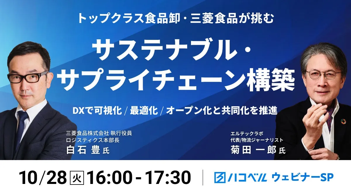 2025年10月28日(火)、ハコベル株式会社が主催するウェビナーにおいて、食品卸業界のリーダーである三菱食品が、持続可能な物流についての新たな取り組みを発表します。このイベントでは、三菱食品株式会社の執行役員ロジスティクス本部長である白石 豊氏が登壇し、物流の新たな形を提案します。