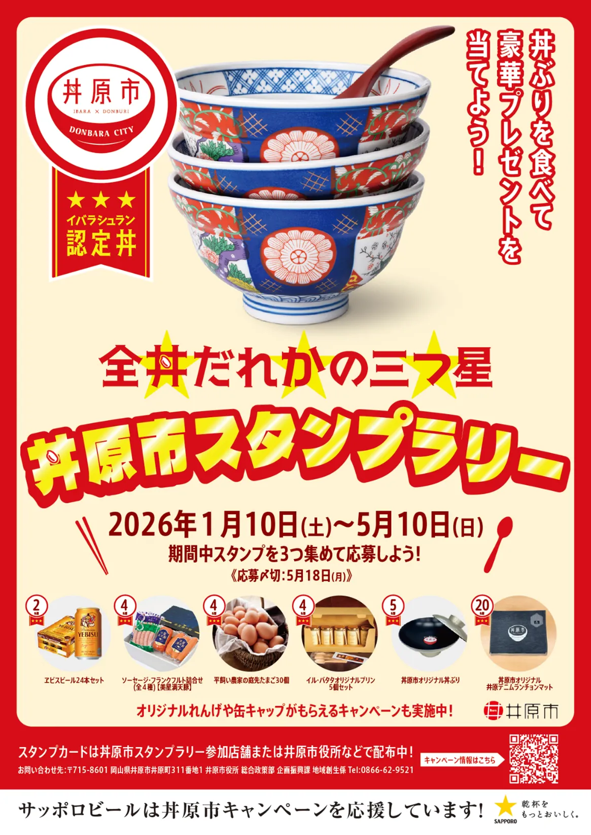 このスタンプラリーは、参加店舗で対象の丼ぶりを味わうことでスタンプを集めるものです。2026年1月10日から5月10日までの期間中に、井原市内の丼ぶり店舗で丼ぶりを注文し、スタンプラリーカードにスタンプを集めて応募すると、素敵な賞品が抽選で当たります。豪華賞品には、ヱビスビールセットや、地元の特産品などが揃っています。特に、ヱビスビールは20歳以上の方限定となっているので注意が必要です。