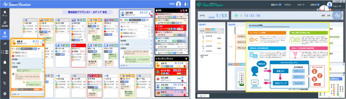 「AmiVoice Communication Suite」には、通話内容の全文テキスト化だけでなく、感情解析機能や話題抽出機能も搭載されています。これにより、通話内容を視覚化し、オペレーターがどのように顧客に対応しているのかを評価することが可能です。また、管理者は複数の通話を同時にモニタリングすることができ、業務の効率化や品質向上に貢献します。