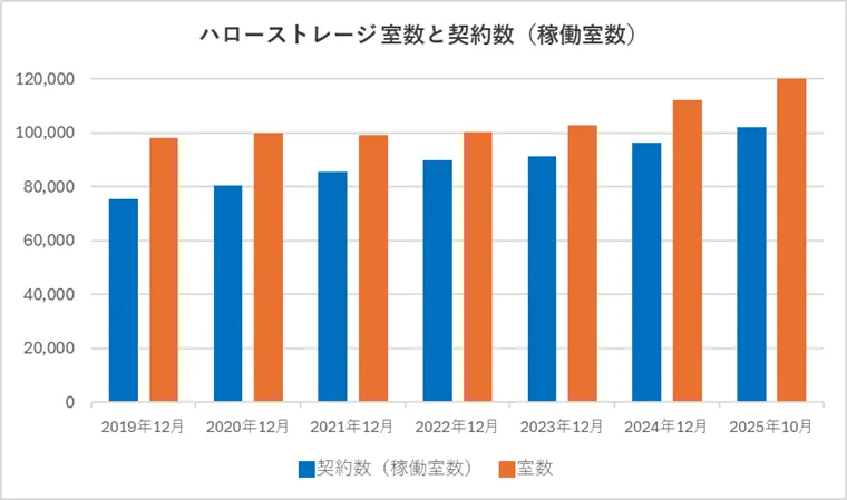「ハローストレージ」はコンテナやビルに設けられたレンタル収納スペースのブランド名で、2,790物件、122,713室(2025年10月時点)を展開しています。屋外型と屋内型のトランクルームを備えたこのサービスは、業界最大規模です。詳細は