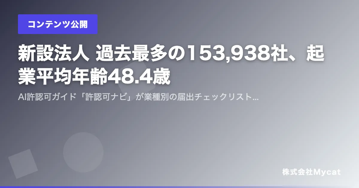 2024年、日本での新設法人数が153,938社に達し、これまでで最高の数値を記録しました。この調査は東京商工リサーチによるもので、多くの人々が起業を選択する時代が訪れていることを示しています。また、帝国データバンクの調査によれば、企業を立ち上げる経営者の平均年齢は48.4歳となっており、高齢化社会においても起業活動が活発に行われていることが分かります。