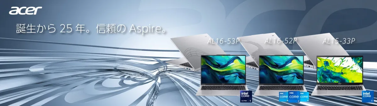今年、Aspire(アスパイア)シリーズは誕生から25年を迎えました。この記念すべき年に、日本エイサー株式会社は新しく「Aspire Lite」シリーズから5機種のノートパソコンを一挙発売することを決定しました。これにより家庭やビジネスシーンでの選択肢がさらに広がります。新たにラインアップに加わるのは、16インチモデルが4機種、15.6インチモデルが1機種です。