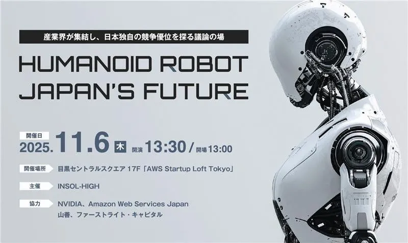 2025年11月6日、東京都でヒューマノイドロボットの社会実装と産業戦略をテーマにした業界横断ミートアップ「Humanoid Robot × Japan's Future Meet UP」が開催されます。このイベントは、ヒューマノイドロボット専用プラットフォーム「REAaL」を運営するINSOL-HIGH株式会社によって主催され、NVIDIAやAmazon Web Services Japan、山善などの主要企業が登壇します。