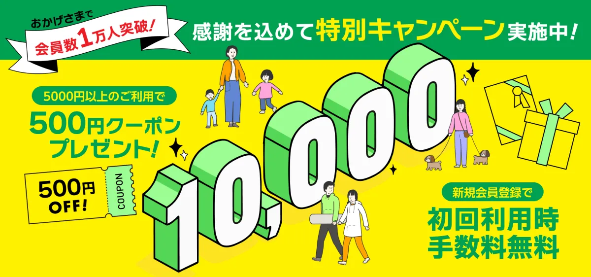 会員数1万人を祝うため、3月1日から4月30日まで「500円クーポンプレゼントキャンペーン」を実施します。このキャンペーンでは、5,000円以上のお買い物をした全員に次回利用できる500円クーポンが進呈されます。