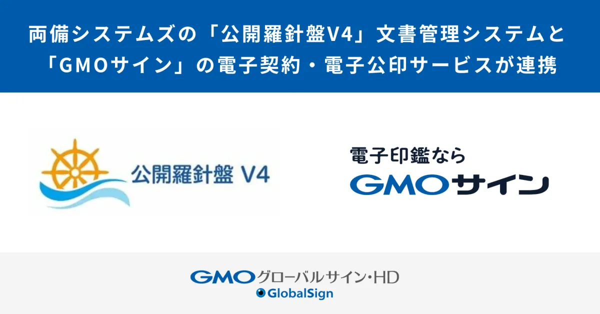 2025年5月1日より、GMOグローバルサイン・ホールディングス(以下、GMOグローバルサイン)と株式会社両備システムズ(以下、両備システムズ)が手を組むことにより、自治体向けの文書管理システム「公開羅針盤V4」と電子契約・電子公印サービス「GMOサイン行革DX」が連携を開始します。この新たな提携により、自治体が契約書や処分通知を一気通貫で電子化することが可能になります。