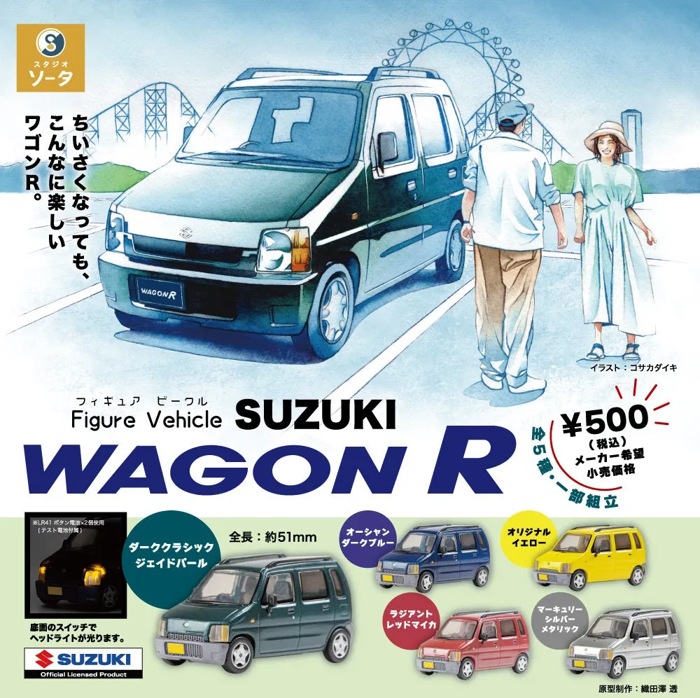 2024年11月27日、スズキと玩具メーカーのスタジオソータがコラボしたカプセルトイ「-Figure Vehicle- SUZUKI WAGON R(スズキ ワゴンアール)」の販売が始まります。この商品は、500円(税込)でカプセルトイ専用筐体にて順次発売されます。