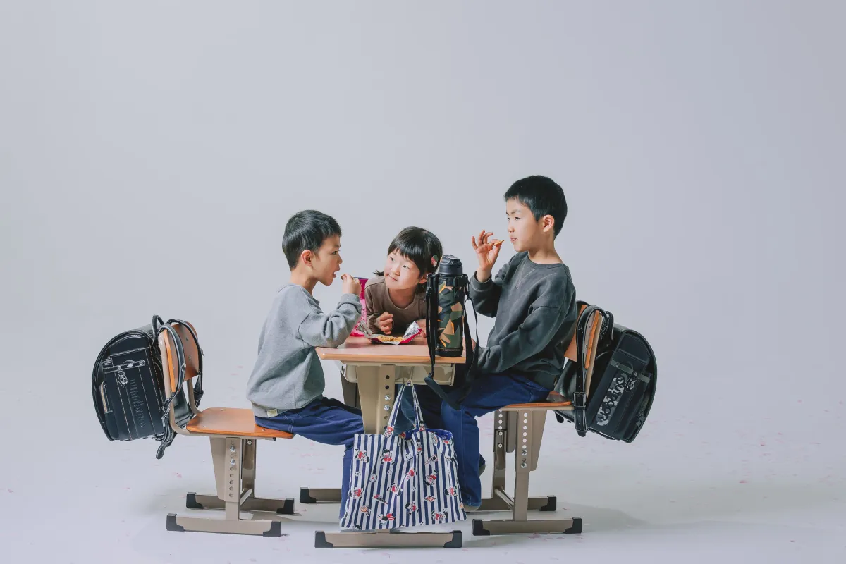 Studio Root/Bは、私たちのスタジオで体験できるその空間を通じて、一人一人の子供たちの成長と家族の物語を大切に記録することを目指しています。ガタガタと音を立てながら運ばれた机、忘れられたプリントが押し込まれた奥行きのある机。こうした日常の情景は、多くの人々の記憶に刻まれています。スタジオは真っ白な背景に、そんな「小学校の日常」をありのままに再現し、今この瞬間を大切に残すお手伝いをします。