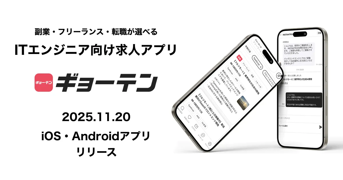 INSTANTROOM株式会社は、フリーランス・ITエンジニア向けの求人プラットフォーム『ギョーテン』のiOSおよびAndroid版アプリを2025年11月20日にリリースしました。これにより、エンジニアたちは外出先でも手軽に仕事の検索や応募ができるようになります。